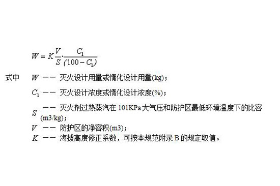 4.1防護區滅火設計用量或惰化設計用量,應按下式計算: